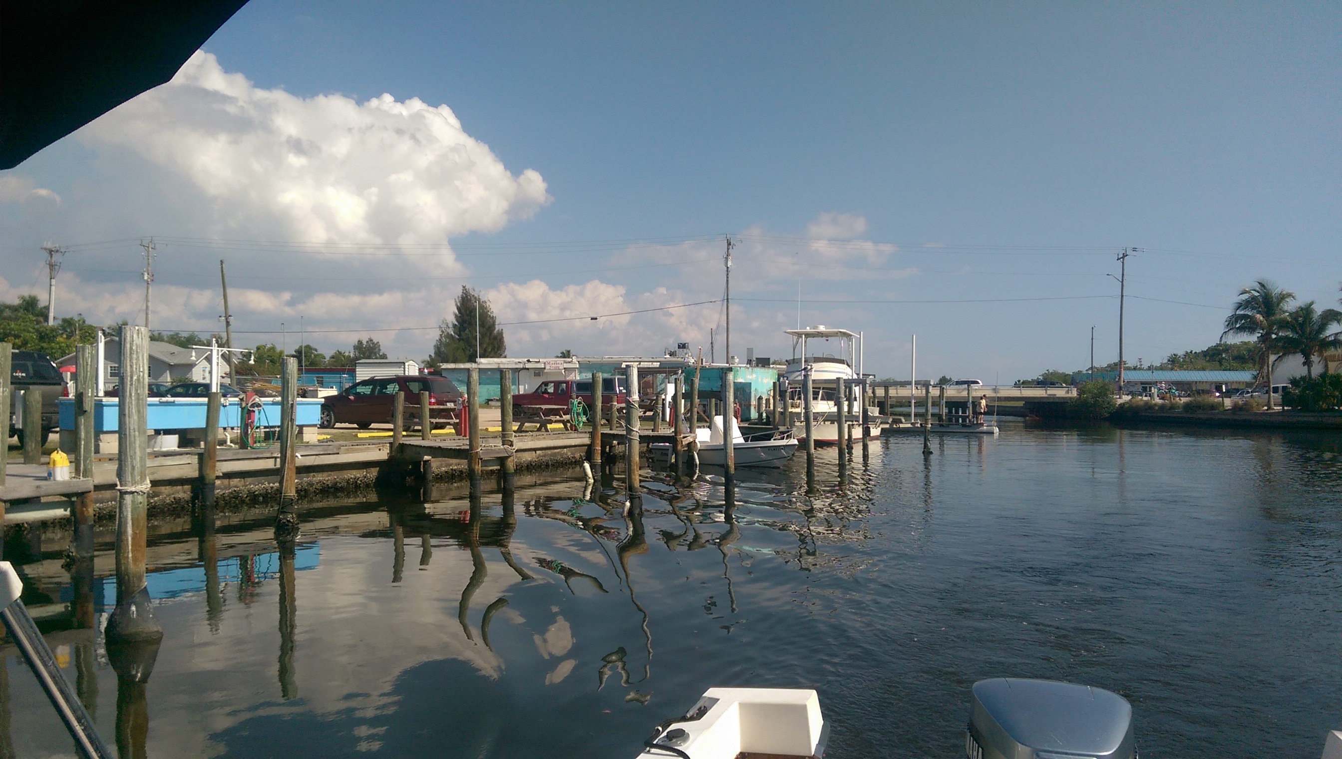 the Grady White docked at the house. kinda looks small now.